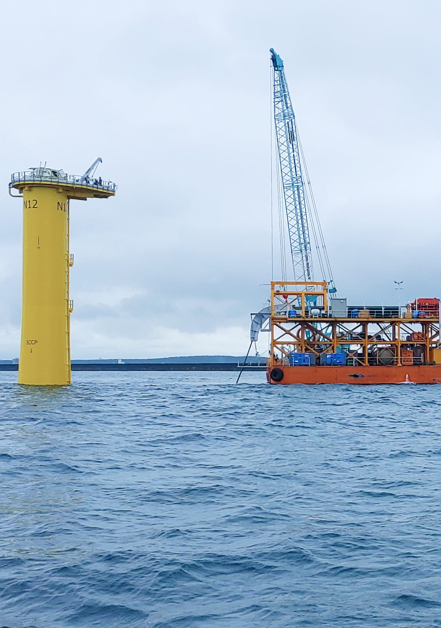 洋上風車への海底ケーブル引込や、各種海洋工事に関わる業務を経験豊富な技術員が現場を支援致します。